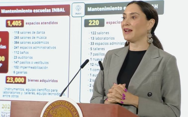![]() 30/03/2026 Claudia Curiel, secretaria de Cultura, destaca inversión de 1,500 mdp en la renovación de escuelas de educación artística y cultural |