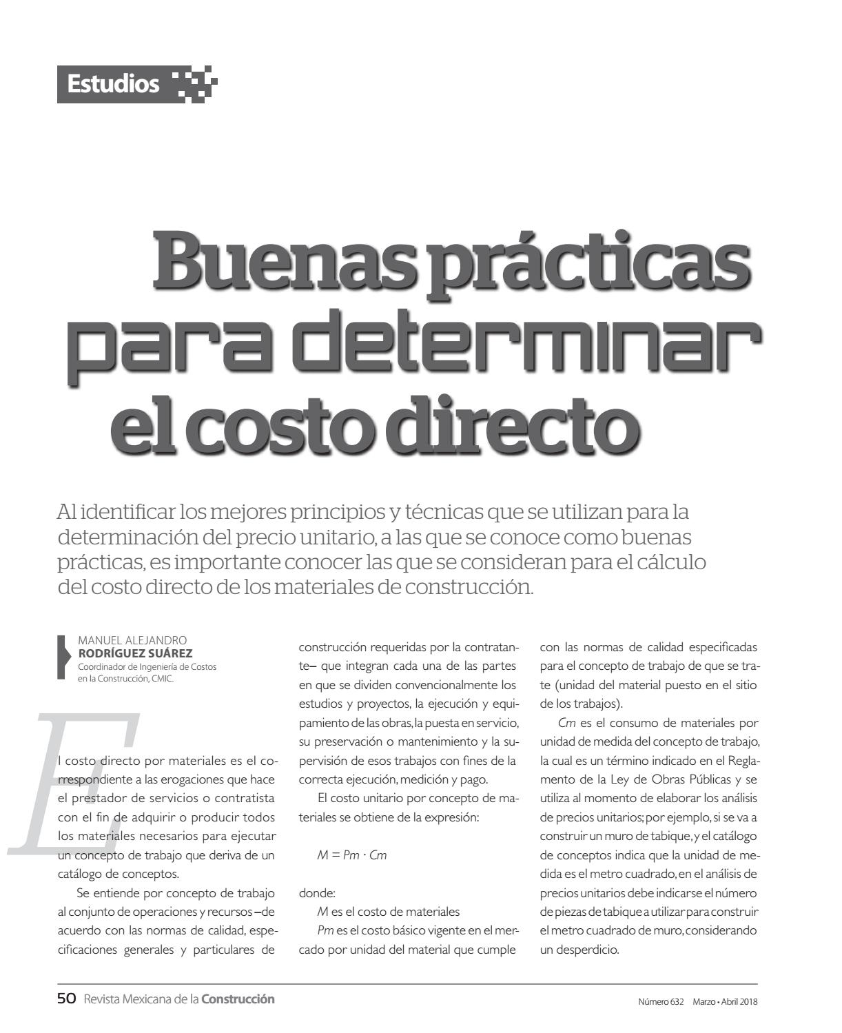 Buenas prácticas para determinar el costo directo Autores: Centro Nacional de Ingeniería de Costos Manuel Alejandro Rodríguez Suárez Omar Josué López Alanis (Véase página 50) |