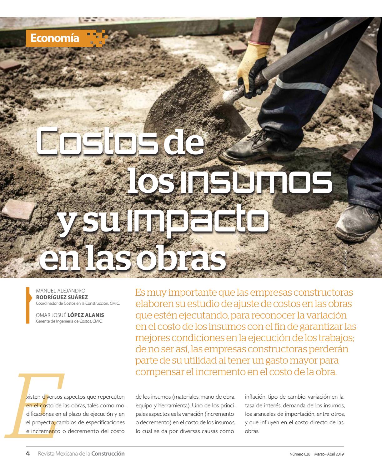 Costo de los insumos y su impacto en las obras Autores: Centro Nacional de Ingeniería de Costos Manuel Alejandro Rodríguez Suárez Omar Josué López Alanis (Véase página 4) |