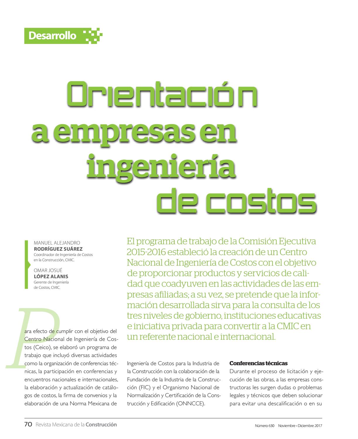 Orientación a empresas en ingeniería de costos Autores: Centro Nacional de Ingeniería de Costos Manuel Alejandro Rodríguez Suárez Omar Josué López Alanis (Véase página 70) |