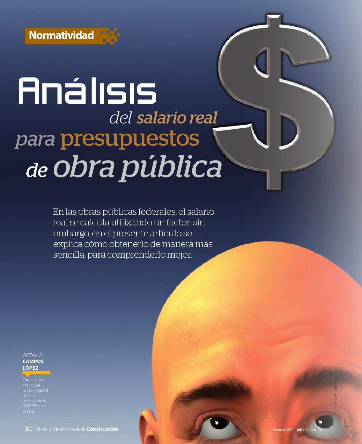 Análisis del Salario Real para Presupuestos de Obra Pública Federal Mexicana Autor: Comisión Nacional de Ingeniería de Costos Octavio Campos López (Véase página 30) |