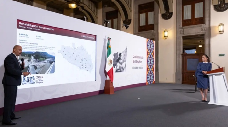 En la construcción y modernización de carreteras y caminos en 10 ejes prioritarios, destaca, en conjunto suman una longitud total de 2,220 kilómetros. Al 30 de junio de 2025, se ha iniciado la construcción de 195 kilómetros en siete ejes de los 10 programados, y se han ejercido 2,078 millones de pesos.