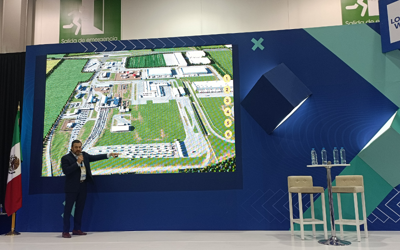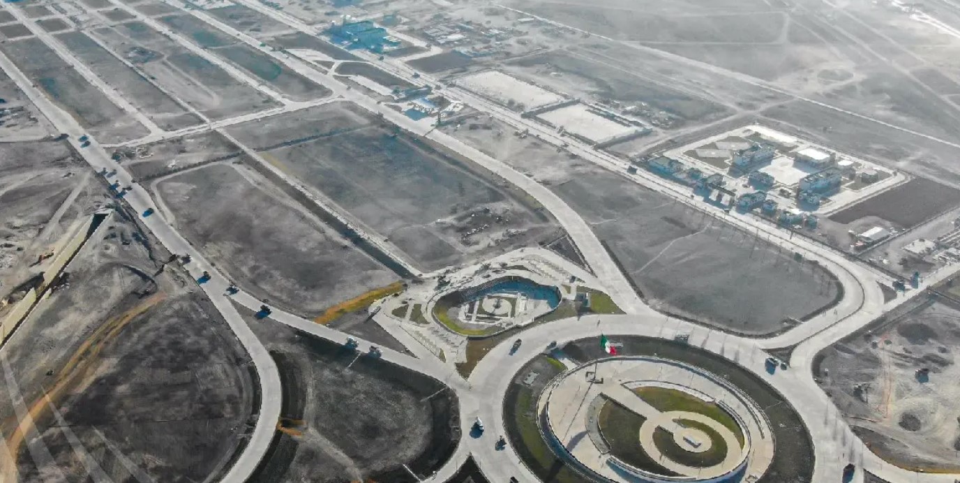 Max Noria apuntó que el proyecto cruza por los municipios de Tultitlán, Tultepec, Nextlalpan y Zumpango, en el Estado de México, y se caracterizará porque este aeropuerto será el primero en América Latina que contará con un tren eléctrico para sus arribos.