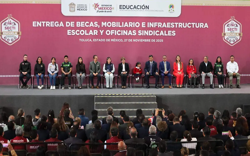 | Durante un acto con el Sindicato de Maestros al Servicio del Estado de México, la gobernadora Delfina Gómez detalló apoyos para estudiantes, docentes y escuelas de 21 municipios. La gobernadora del Estado de México, Delfina Gómez Álvarez, afirmó que en su administración la educación es un motor del desarrollo comunitario y, por ello, se destinaron más de 300 millones de pesos en becas, mobiliario, infraestructura escolar y oficinas sindicales. Durante la ceremonia realizada en el auditorio Agripín García Estrada del Sindicato de Maestros al Servicio del Estado de México (SMSEM), detalló que, en la 13ª entrega de la beca Bienestar Edomex de la Olimpiada del Conocimiento Infantil 2025, 505 niñas y niños destacados fueron beneficiados. Becas y apoyos educativos La mandataria agregó que se otorgaron 2 mil 78 becas de Ciencia con Incidencia para el Bienestar del Consejo Mexiquense de Ciencia y Tecnología, correspondientes a la promoción 2025 y dirigidas a estudiantes de nivel superior. En materia de infraestructura y equipamiento escolar, el gobierno entregó vales de obra y mobiliario en beneficio de 695 escuelas de 21 municipios. Gómez Álvarez señaló que todas estas acciones representan una inversión histórica que supera los 300 millones de pesos, lo que, dijo, reafirma que para su administración la educación pública es un motor de desarrollo comunitario y social. Reconocimiento al magisterio Acompañada del líder del SMSEM, Jenaro Martínez Reyes, y del secretario de Educación, Ciencia y Tecnología, Miguel Ángel Hernández, la gobernadora destacó que las y los docentes son agentes de cambio social. Asimismo, informó que las nuevas oficinas del magisterio estatal atenderán a más de 100 mil maestras y maestros. Reiteró que el trabajo conjunto entre el gobierno y otras instancias es fundamental para fortalecer la infraestructura escolar. Vocación docente y fortalecimiento educativo La gobernadora destacó que hoy más que nunca se necesita que los maestros mantengan su vocación de servicio y continúen preparándose día con día. Asimismo, anunció que se fortalecerá la infraestructura educativa y adelantó que recientemente sostuvo un diálogo con el embajador de la India para impulsar un intercambio tecnológico aplicado en distintos campos, incluido el educativo. Nuevas oficinas del magisterio La mandataria resaltó que las nuevas oficinas centrales del magisterio cuentan con instalaciones modernas para atender a más de 105 mil maestras y maestros agremiados. Es más que un edificio; es un espacio para fortalecer la organización, defender derechos laborales y generar políticas educativas innovadoras , afirmó. Crecimiento histórico del SMSEM El líder del SMSEM, Jenaro Martínez Reyes, calificó el 27 de noviembre como una fecha histórica por la inauguración del nuevo edificio sindical, señalando que las anteriores oficinas databan de 1970. Recordó que en ese año existían 73 delegaciones; hoy suman mil 53. Los delegados sindicales pasaron de 577 a 4 mil 837, y el número de docentes afiliados creció de 15 mil a más de 105 mil. Infraestructura digna y Nueva Escuela Mexicana El secretario de Educación estatal, Miguel Ángel Hernández, destacó que el programa educativo pone al centro la dignidad de cada persona mediante espacios seguros, accesibles y adecuados, en cumplimiento con la Nueva Escuela Mexicana. Afirmó que los apoyos entregados en infraestructura, becas y acompañamiento responden directamente a las necesidades expresadas por la comunidad escolar durante los recorridos por los 125 municipios. Voces de beneficiarios La estudiante becaria del Tecnológico de San Felipe del Progreso, Mariana Becerril, señaló que estos apoyos representan un voto de confianza a la juventud y que los proyectos resultantes fortalecerán la vida comunitaria. Lázaro Villanueva, director de una escuela beneficiada, afirmó que el mobiliario y las obras dignifican la infraestructura escolar y que tanto docentes como alumnado se comprometerán a cuidarla. Durante el evento, la gobernadora entregó apoyos de manera simbólica. Asistieron la Oficial Mayor del gobierno mexiquense, Mónica Chávez Durán, padres de familia, docentes, estudiantes, legisladores y miembros del gabinete estatal. | ||