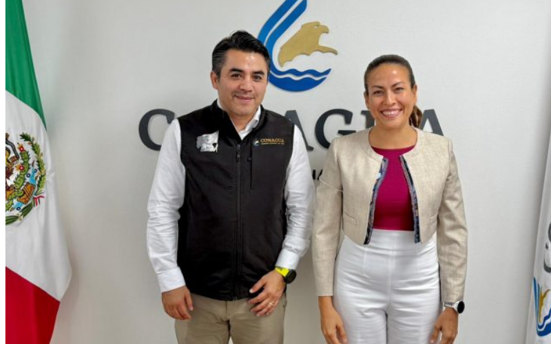 | La Paz, Baja California Sur.- La alcaldesa de La Paz, Milena Quiroga Romero, sostuvo una reunión de trabajo en la Ciudad de México con el director general de la Comisión Nacional del Agua (Conagua), Efraín Morales López, para dar seguimiento a los