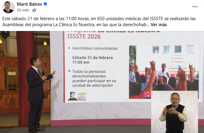 ![]() 17/02/2026 Batres presume avances de "La Clínica es Nuestra" en 2025 |